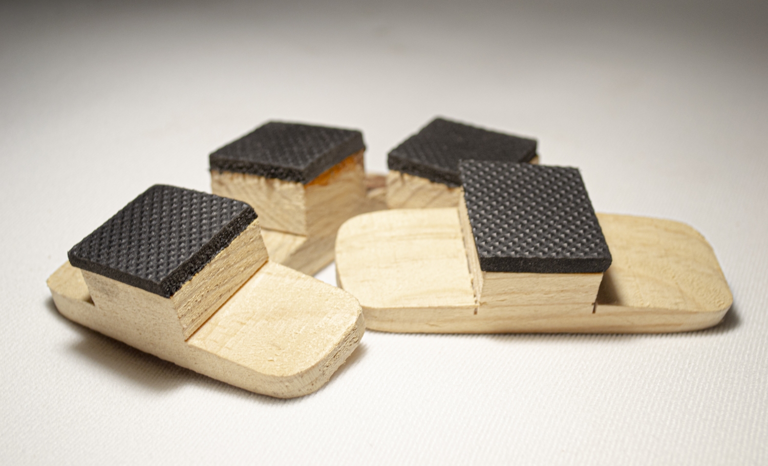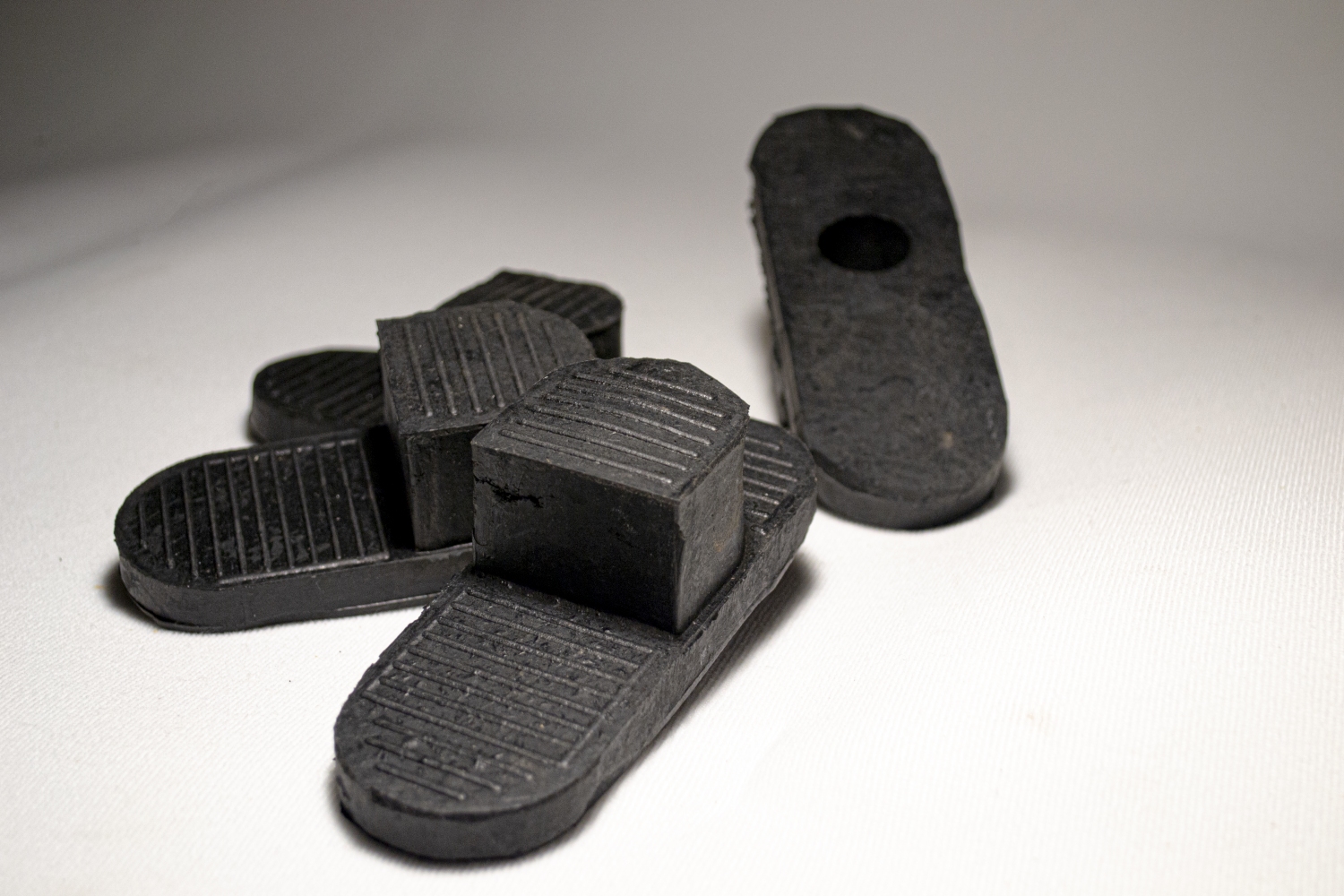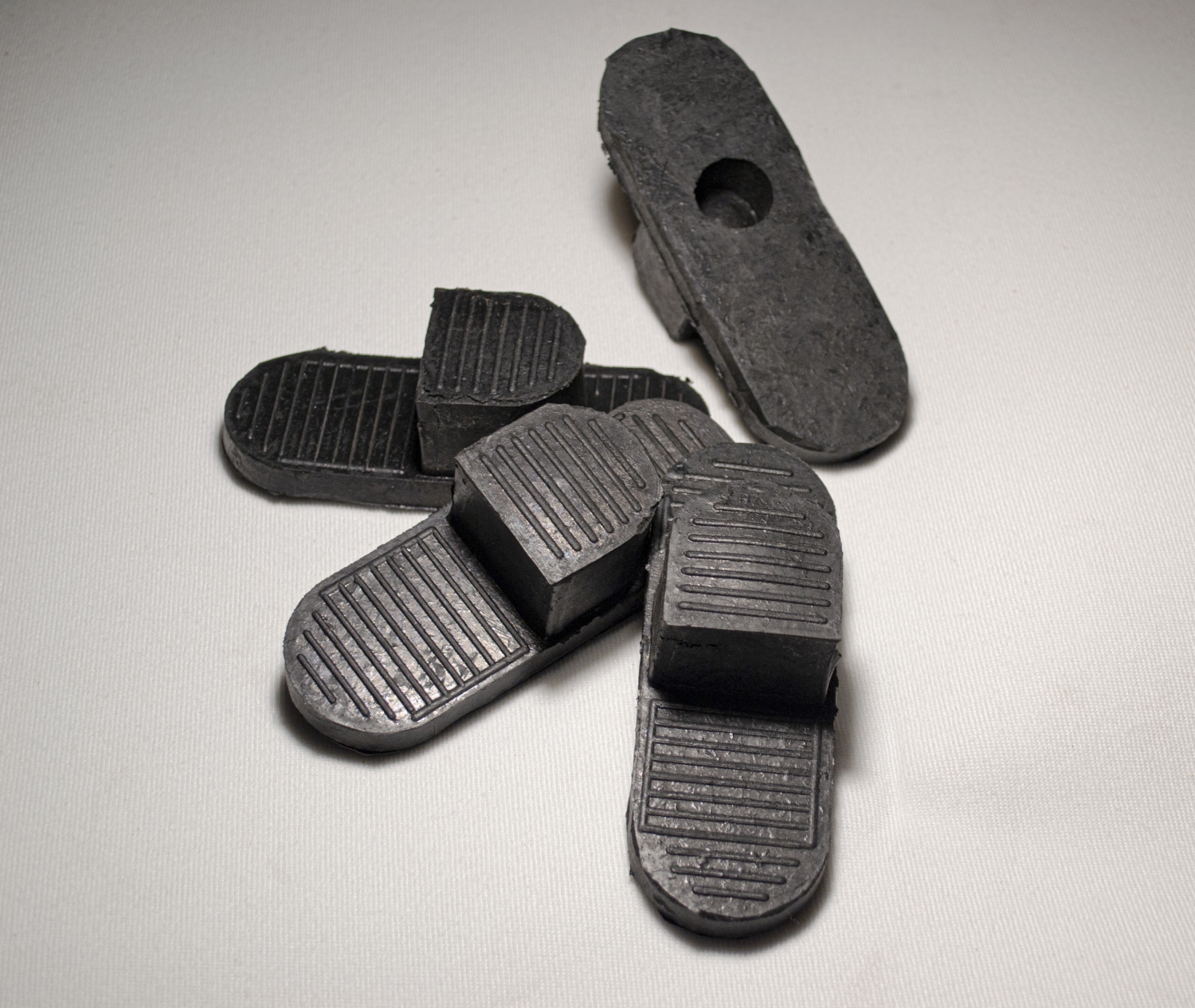 Apoyo para bota de yeso, fabricado en madera de pino con tapilla de caucho de 10mm fijada con adhesivo neopreno y clavos