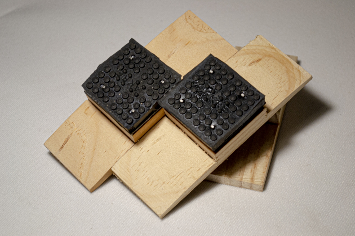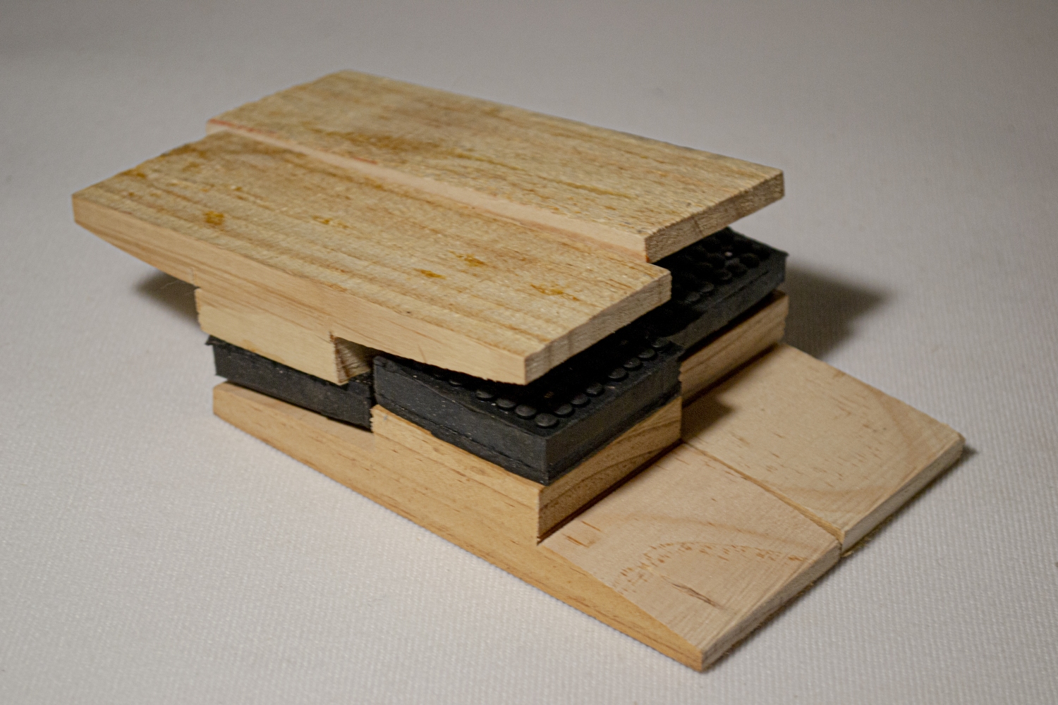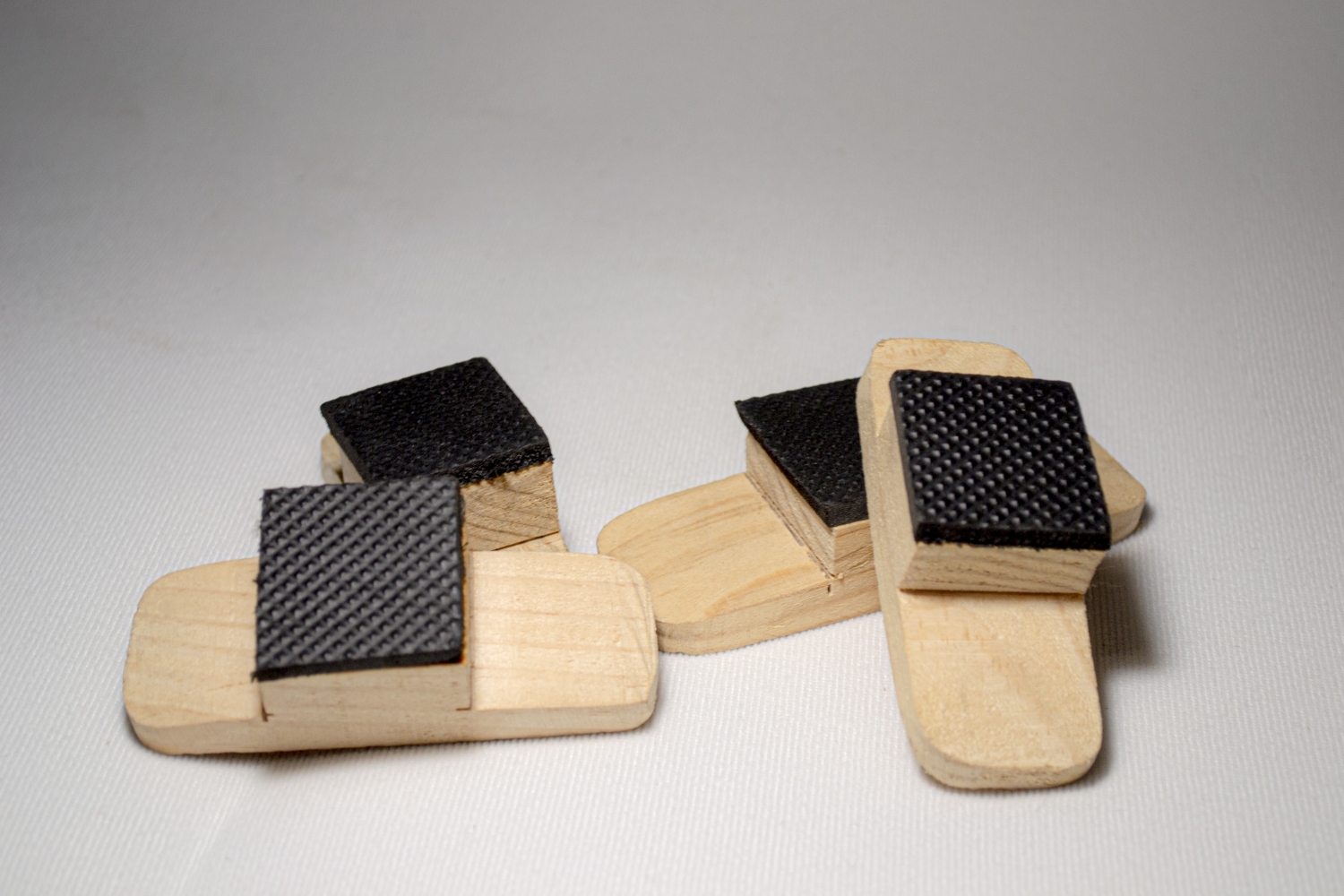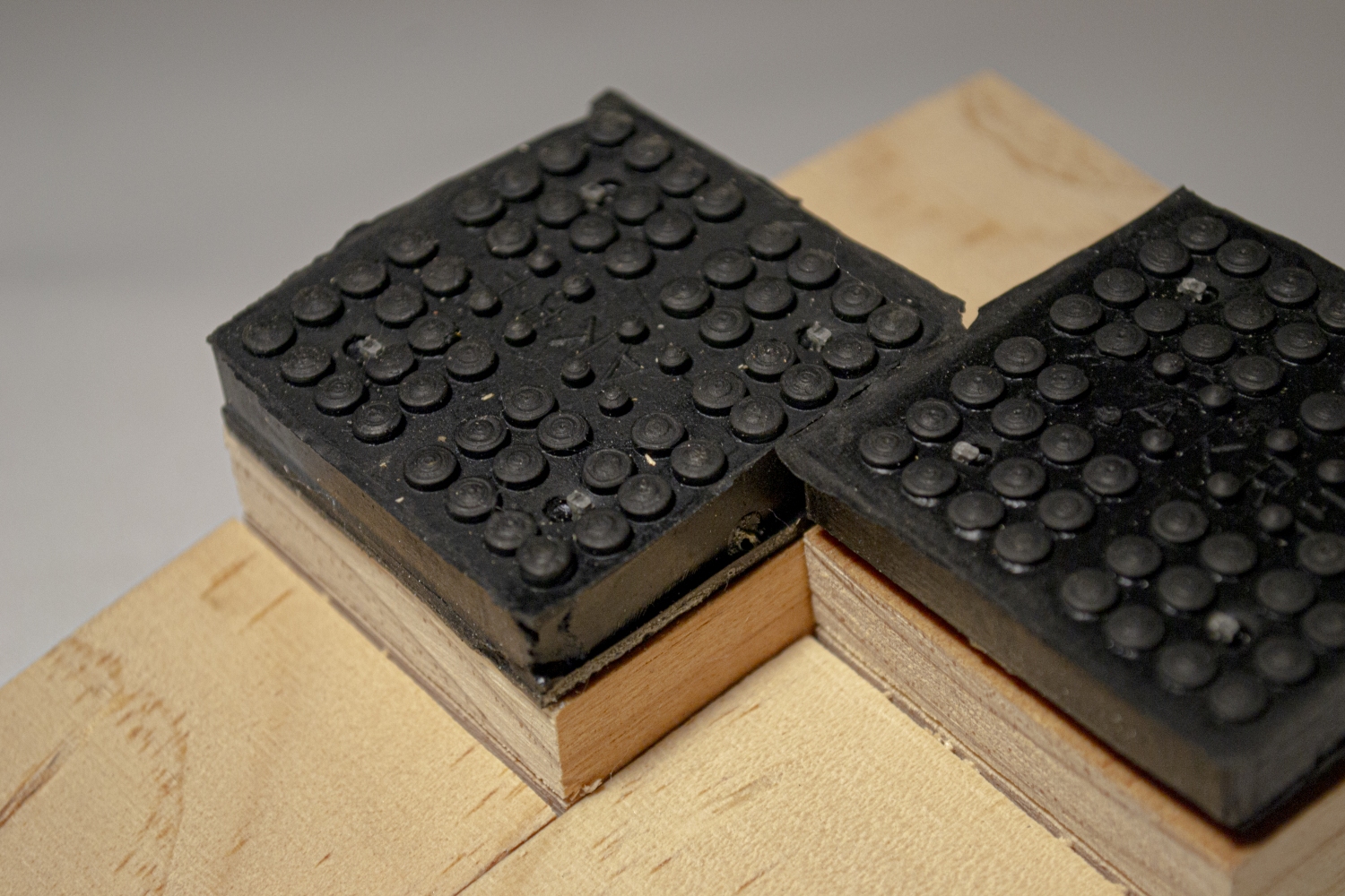 Apoyo para bota de yeso, fabricado en madera de pino con tapilla de caucho de 10mm fijada con adhesivo neopreno y clavos